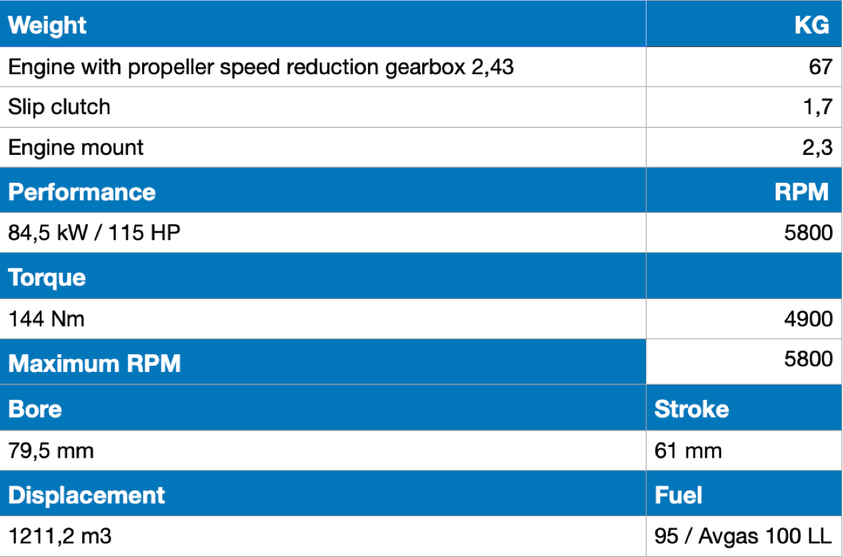 The C115 aero engine is a widely used turbocharged aircraft engine for ultralight and light-sport aircraft as well as medium altitude long endurance unmanned aerial vehicles. The C115 offers more performance at high altitude and one of the best power to weight ratios, in excess of 1.134 kW/kg.